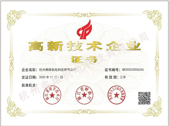熱烈慶祝杭州弗維機電科技有限公司獲得“國家級高新技術企業”證書!