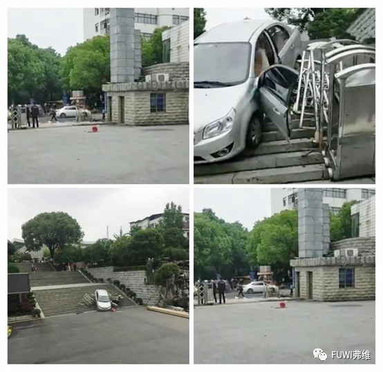 前不久,長沙一小車在湖南師大附中校門倒車,因操作不當,與兩名行人發生刮蹭后,又與一學校門衛崗亭、伸縮門相碰,結果沖破校門的電動伸縮門至校內臺階上,造成行人輕微受傷,車輛、設施受損。